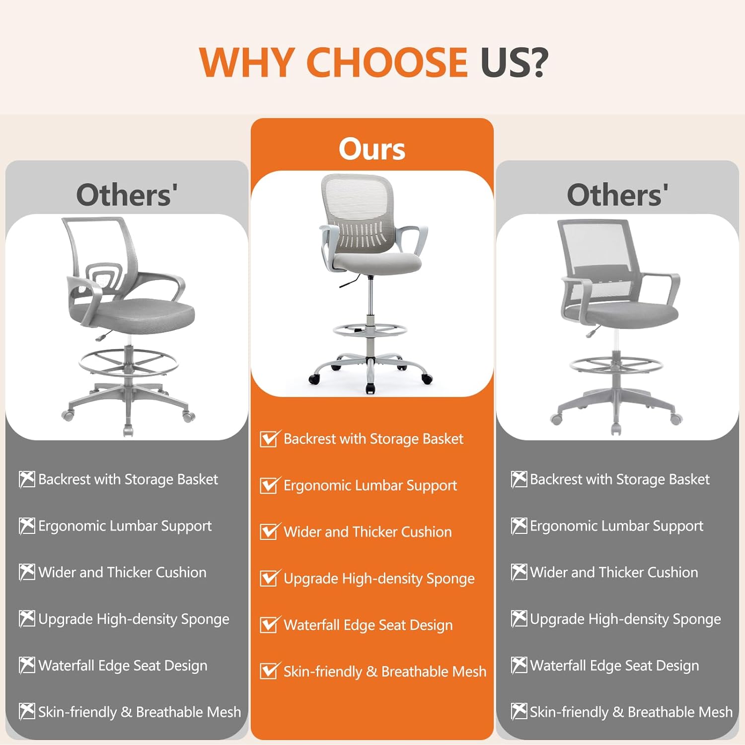 - ✓ practical buyers who want ergonomic drafting basics , lumbar, mesh, footrest , while keeping things practical