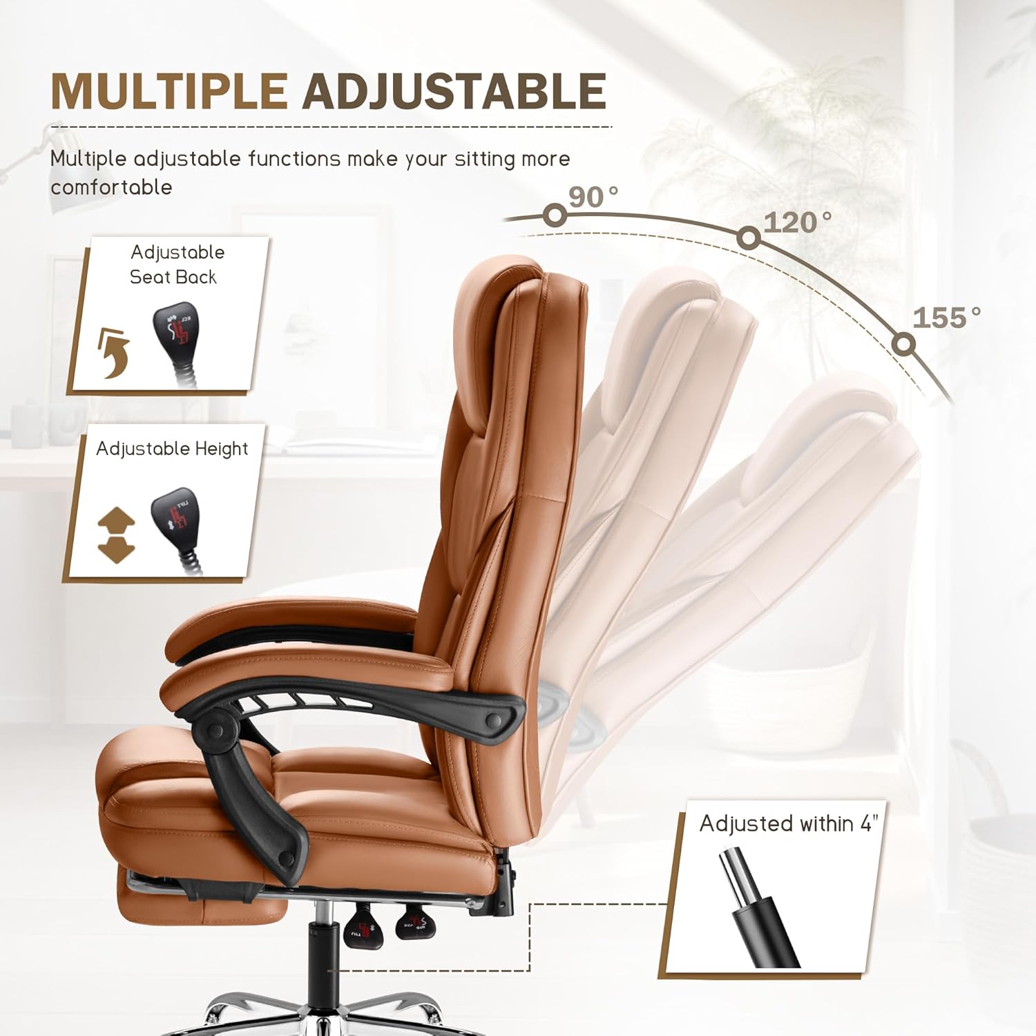 DYHOME Comfortable Ergonomic Office Chair with Foot Rest 500LBs, Executive Big and Tall Office Chair with Adjustable Height Headrest and Waist Lumber, PU Leather Reclining Chair for Home (Brown)