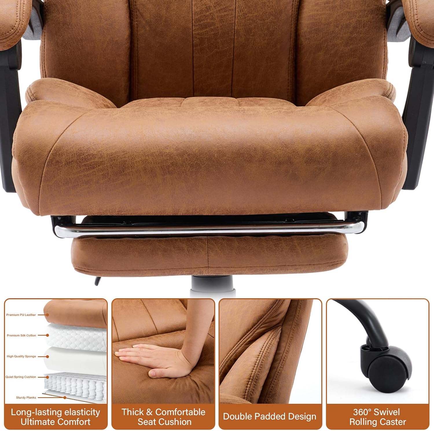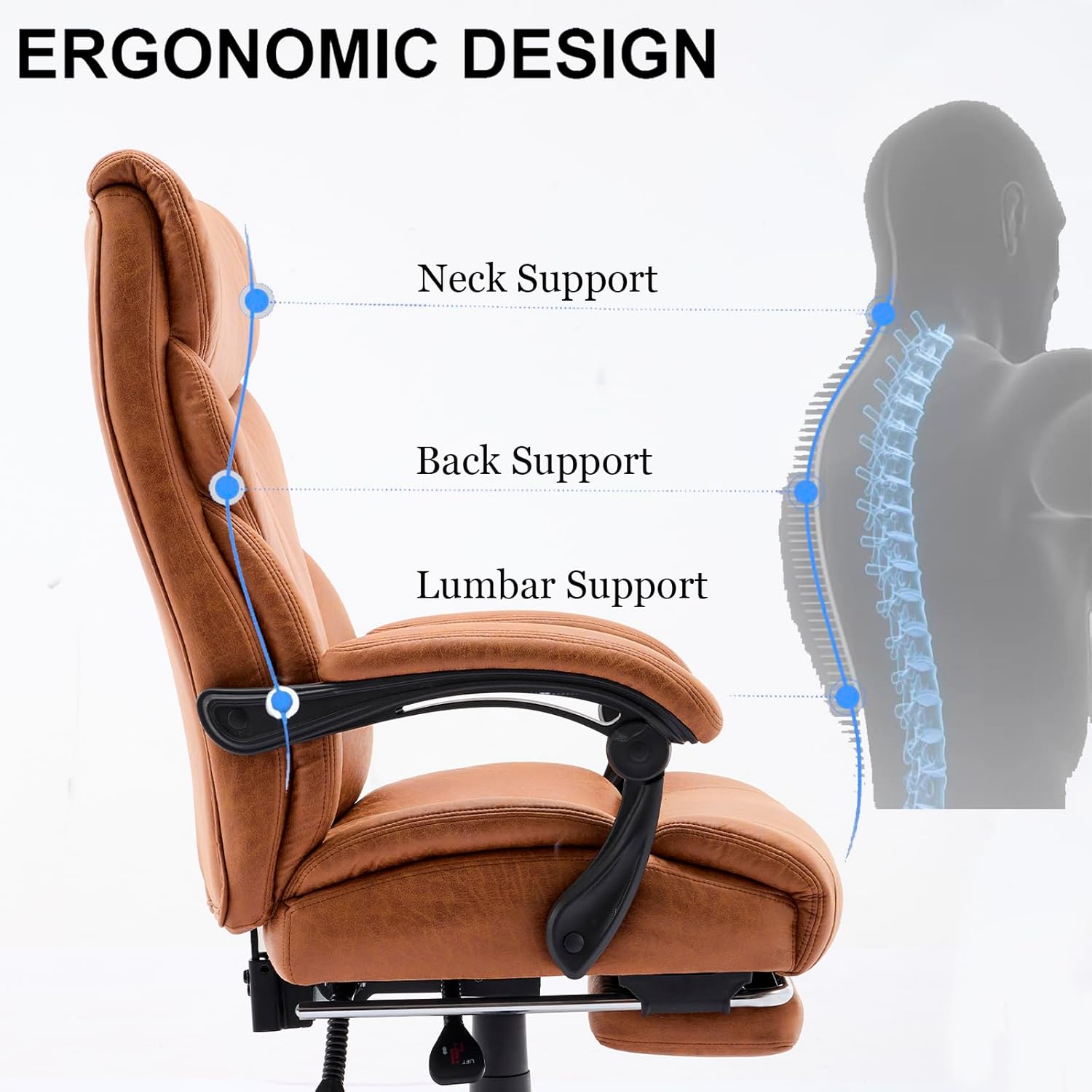 DYHOME Comfortable Ergonomic Office Chair with Foot Rest 500LBs, Executive Big and Tall Office Chair with Adjustable Height Headrest and Waist Lumber, PU Leather Reclining Chair for Home (Brown)