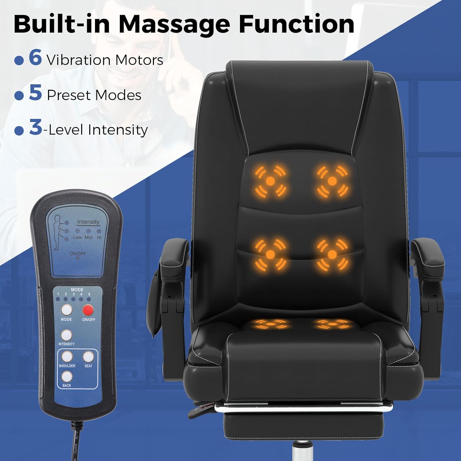 A heavy-duty big and tall office chair that combines massage functionality with a 400 lb weight capacity and 145-degree recline. The Giantex delivers executive styling in PU leather with practical extras like a retractable footrest and linkage armrests, making it a solid pick for larger users who want comfort during long sessions.