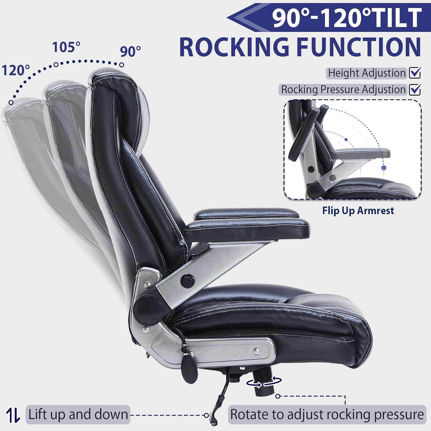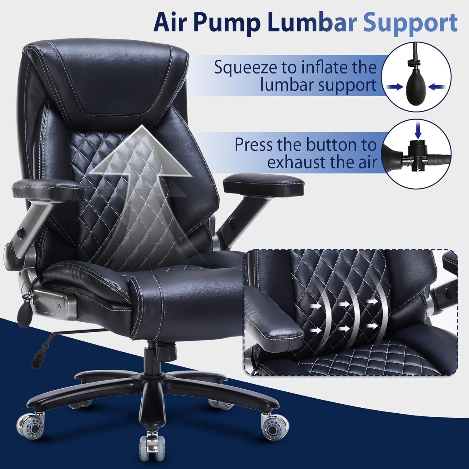 Big and Tall Office Chair with Wide Area Armrest, 600LBS PU Leather Executive Chair, Adjustable Lumbar Support 3'' Double Space Wheel, Managerial Home Desk Heavy Duty Office Chair