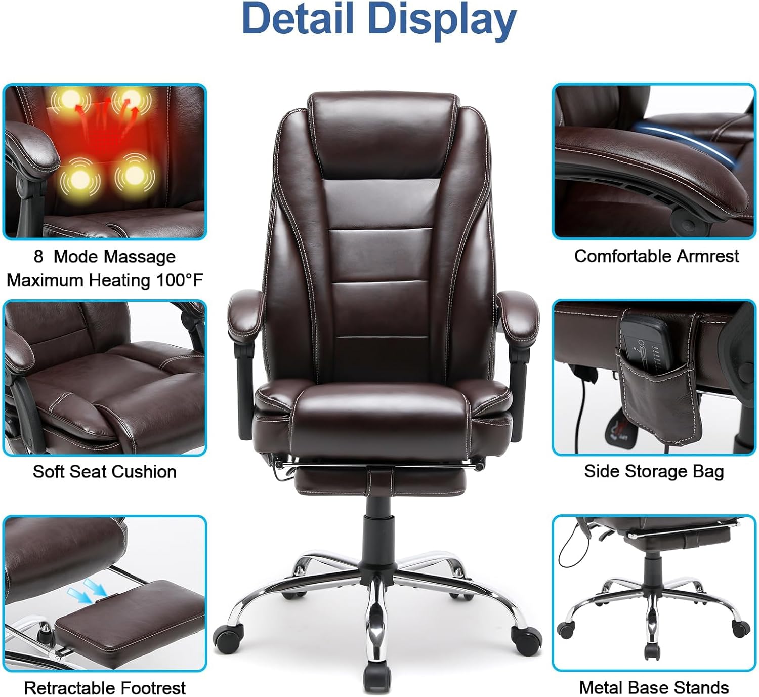 Best for home office users who want executive style with built-in massage, heating, and reclining comfort