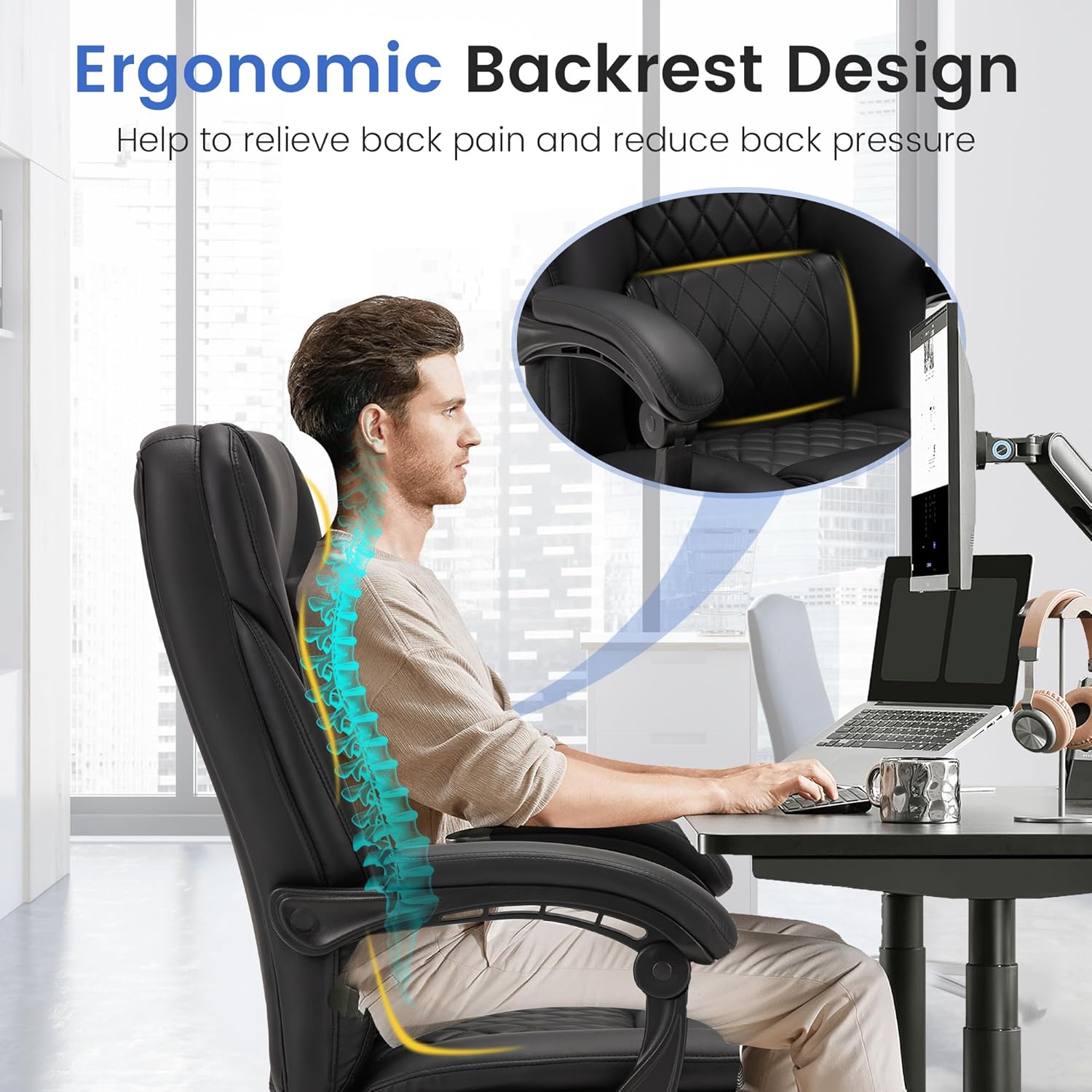 400lbs Executive Office Chair with Foot Rest for Heavy People, Ergonomic Big and Tall Desk Chair with Adjustable Headrest, High Back PU Leather Comfy Heavy Duty Computer Chair