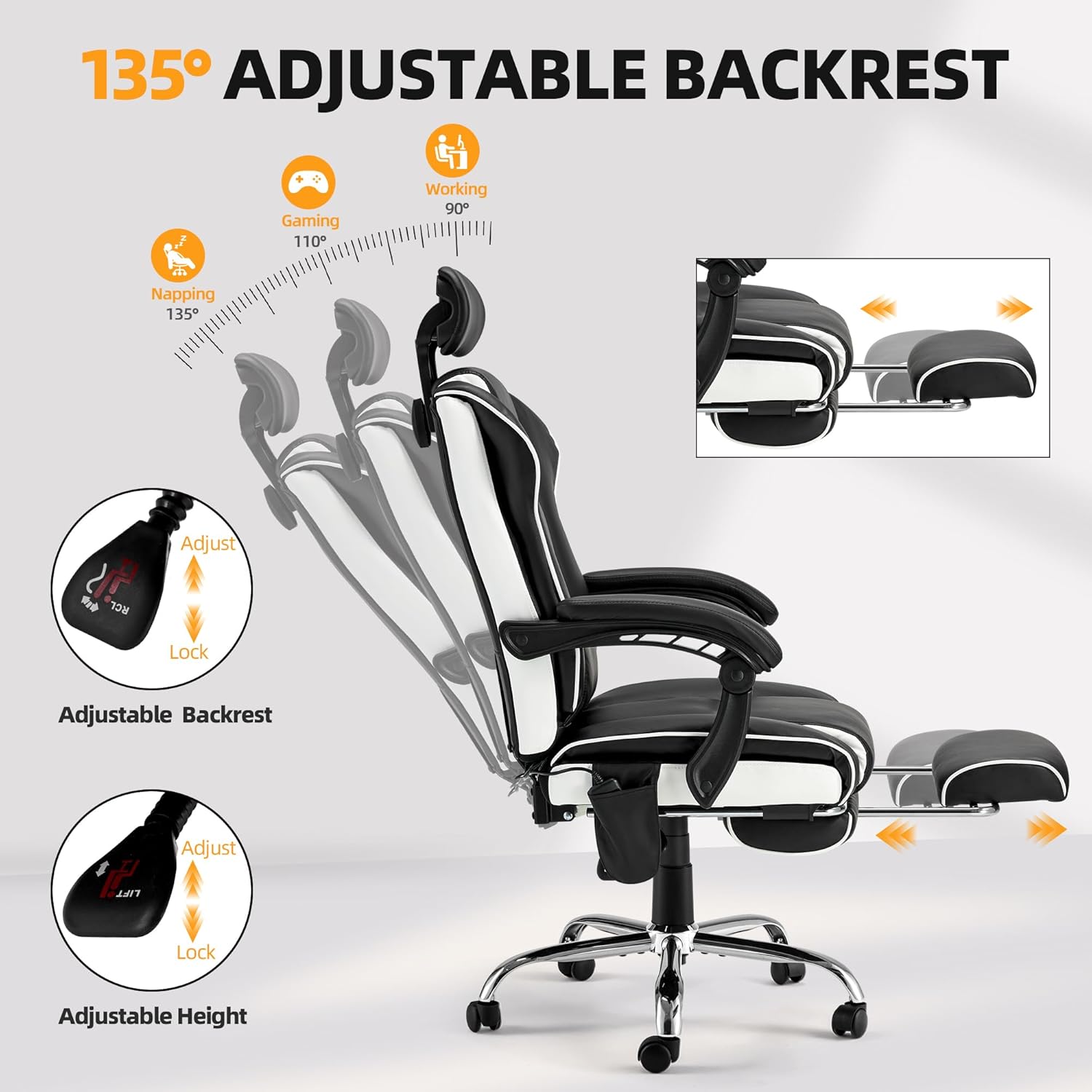 The HOMREST 6-Point Massage Office Chair packs executive styling, a built-in footrest, and heated massage into a 400 lb capacity frame , a rare combination in this tier. It's best suited for gamers and home office workers who want a reclining chair they can actually relax in between tasks.