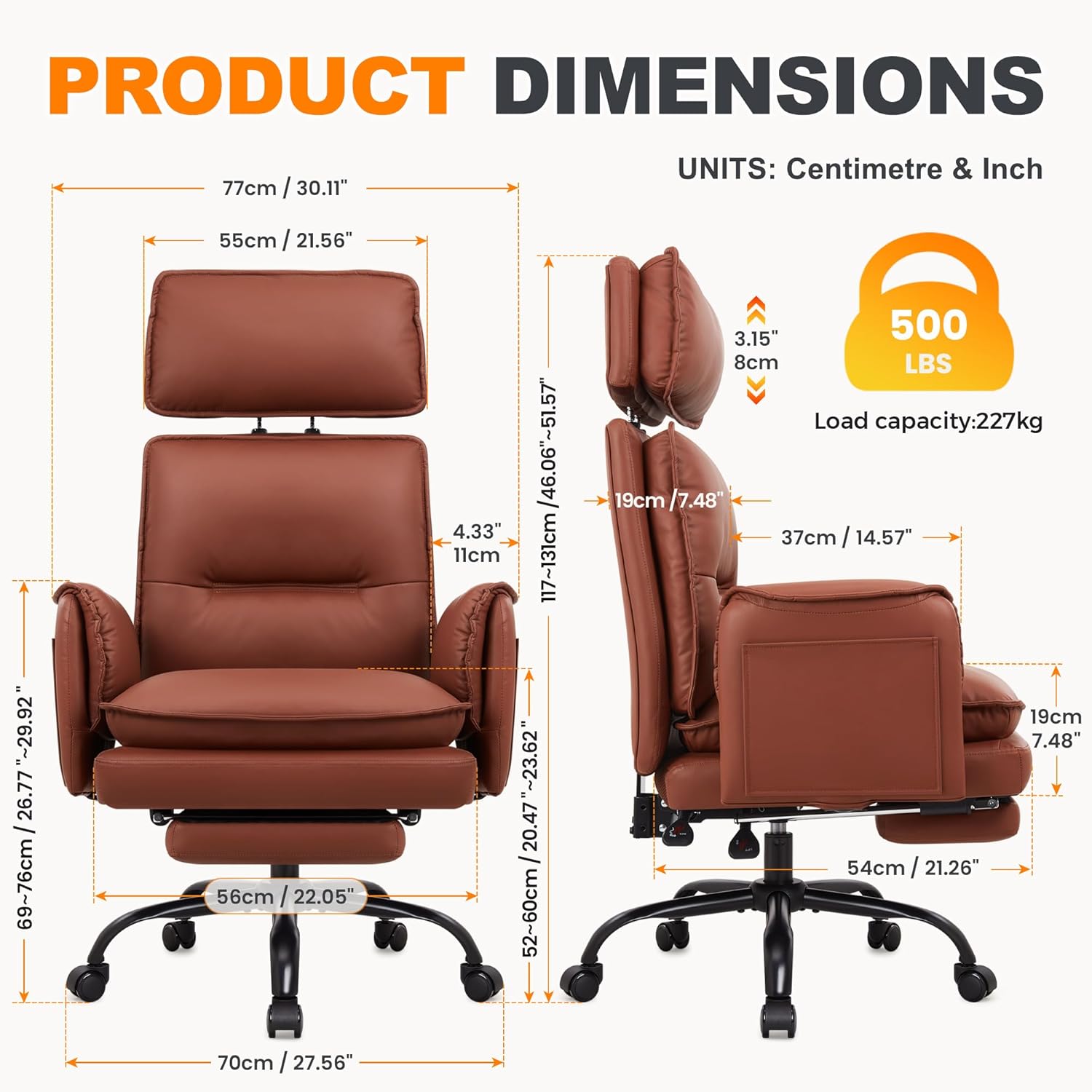 DYHOME Comfortable Ergonomic Office Chair with Foot Rest 500LBs, Executive Big and Tall Office Chair with Adjustable Height Headrest and Waist Lumber, PU Leather Reclining Chair for Home (Brown)