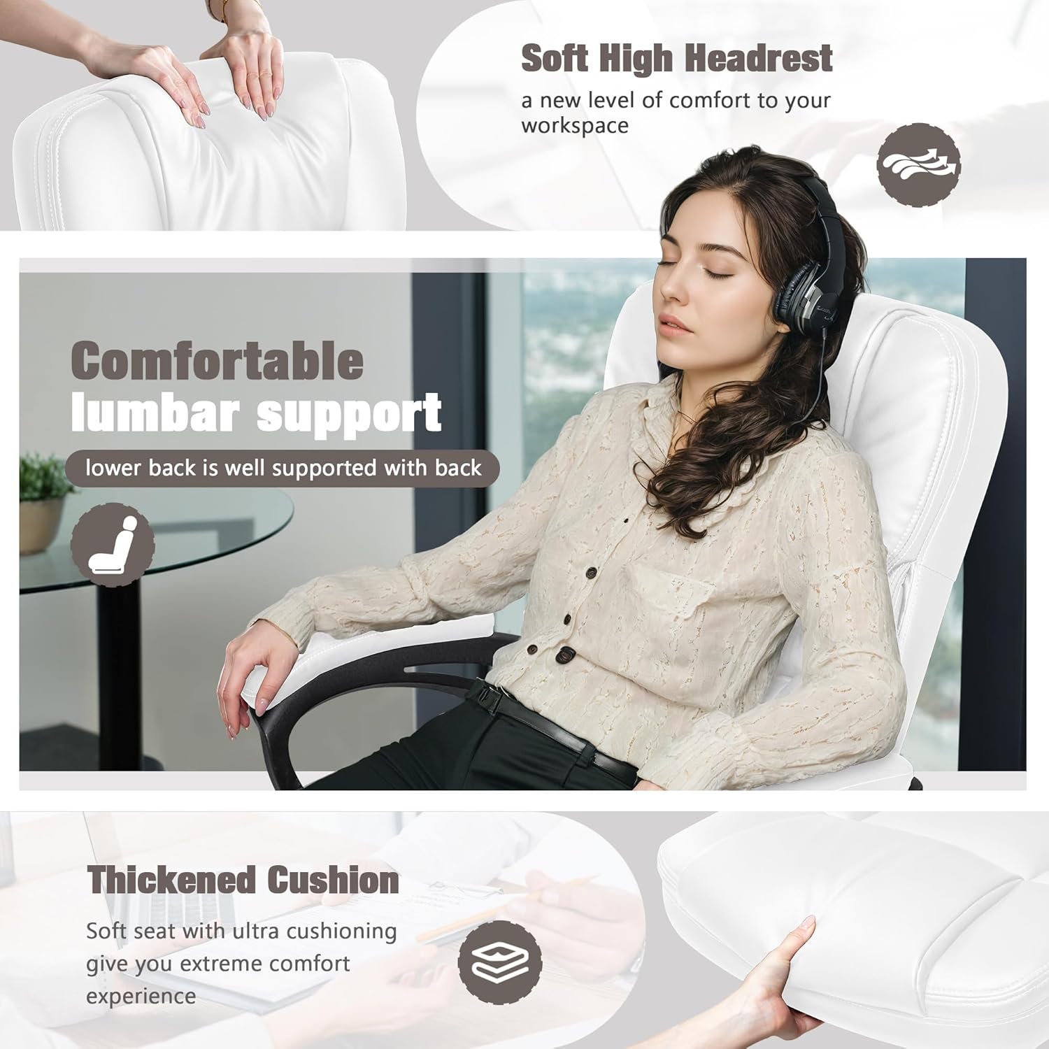 The JUMMICO Executive Office Chair delivers a polished, professional look with its white PU leather upholstery and high back design as an entry-level option. With adjustable lumbar support and a 300 lb weight capacity, it's a solid pick for home office workers who want executive styling without the executive tier.