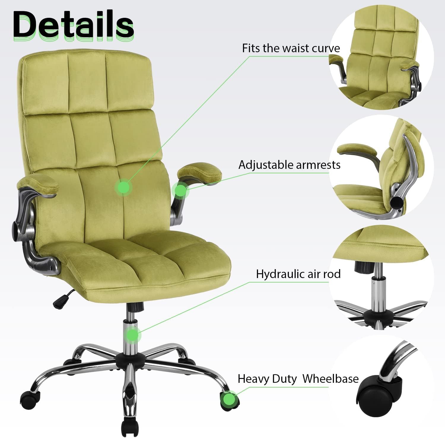 - ✓ Home office workers who prioritize aesthetics , the green velvet design adds personality to bedrooms and home offices