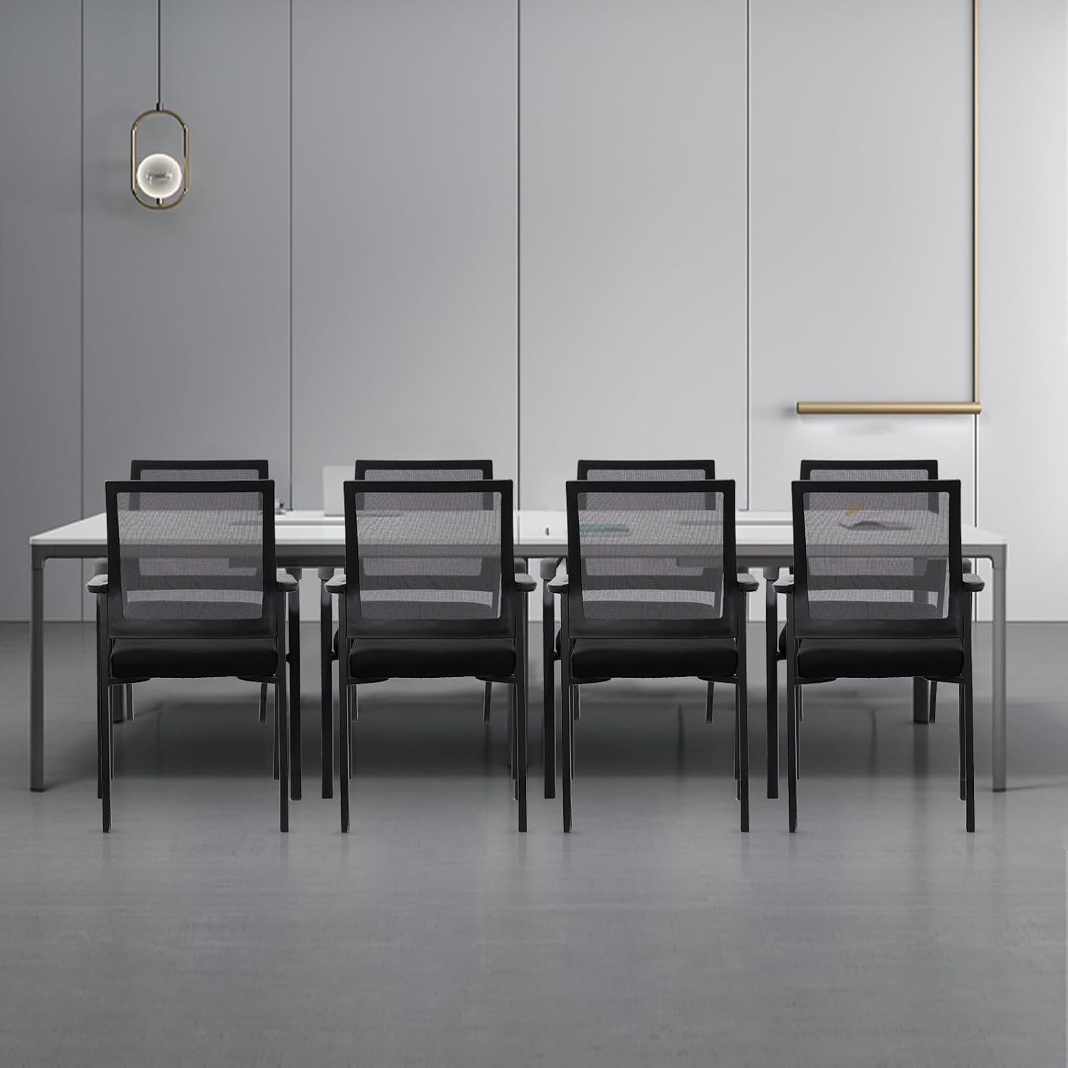 The KLASIKA 8-pack mesh guest chair delivers a rare combination for bulk conference seating: genuine lumbar support, a thick comfortable cushion, and breathable airflow in a stable no-wheel design. It's an excellent value for outfitting meeting rooms, reception areas, or any shared space where comfort and durability matter.