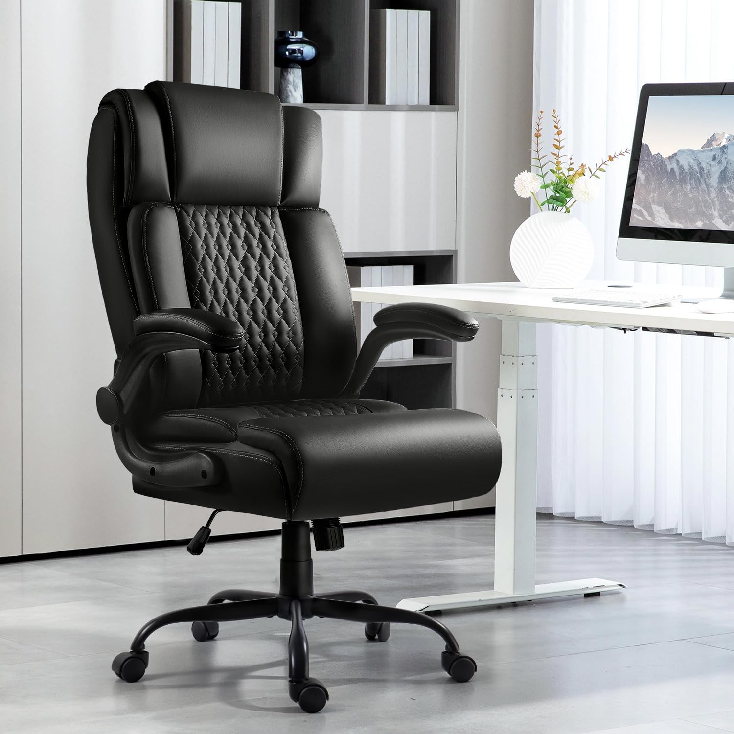 VITESSE Executive Office Chair,Heavy Duty Chair with Flip up Armrest,Ergonomic High Back Computer Gaming Chairs Home Office 400lbs, Big and Tall Office Chair with Lumbar Support(Black)