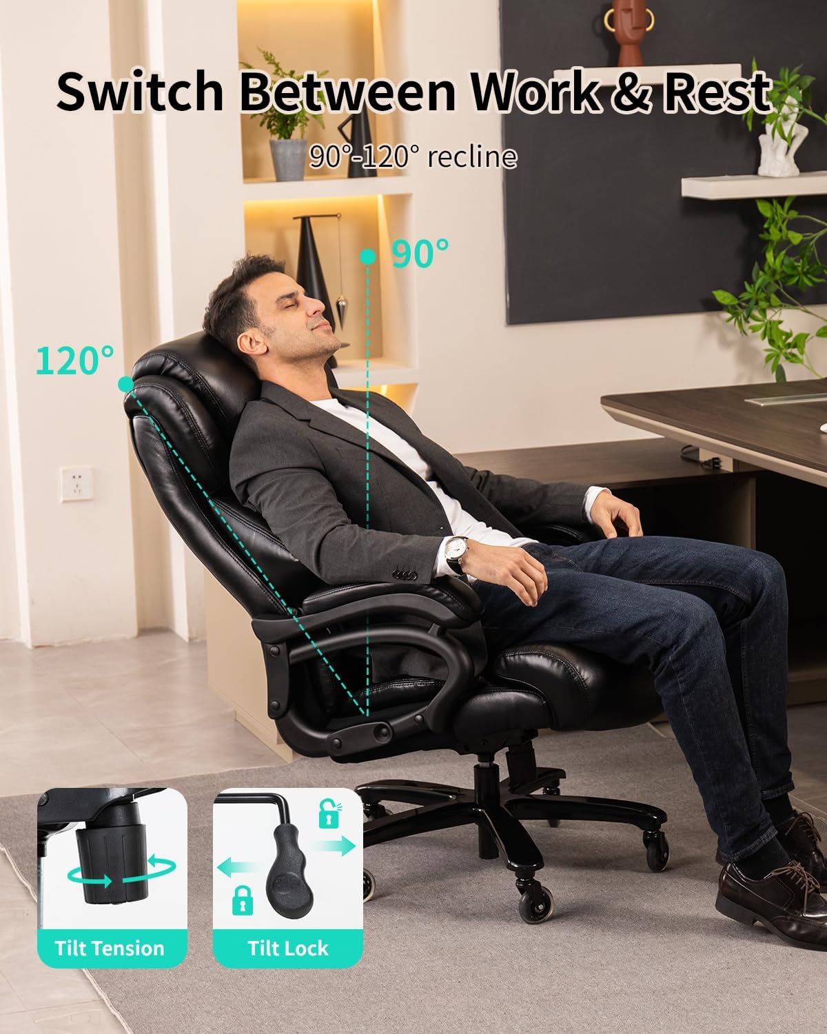 - ✓ Executive office workers who want a professional leather look with high-back support for 8+ hour days