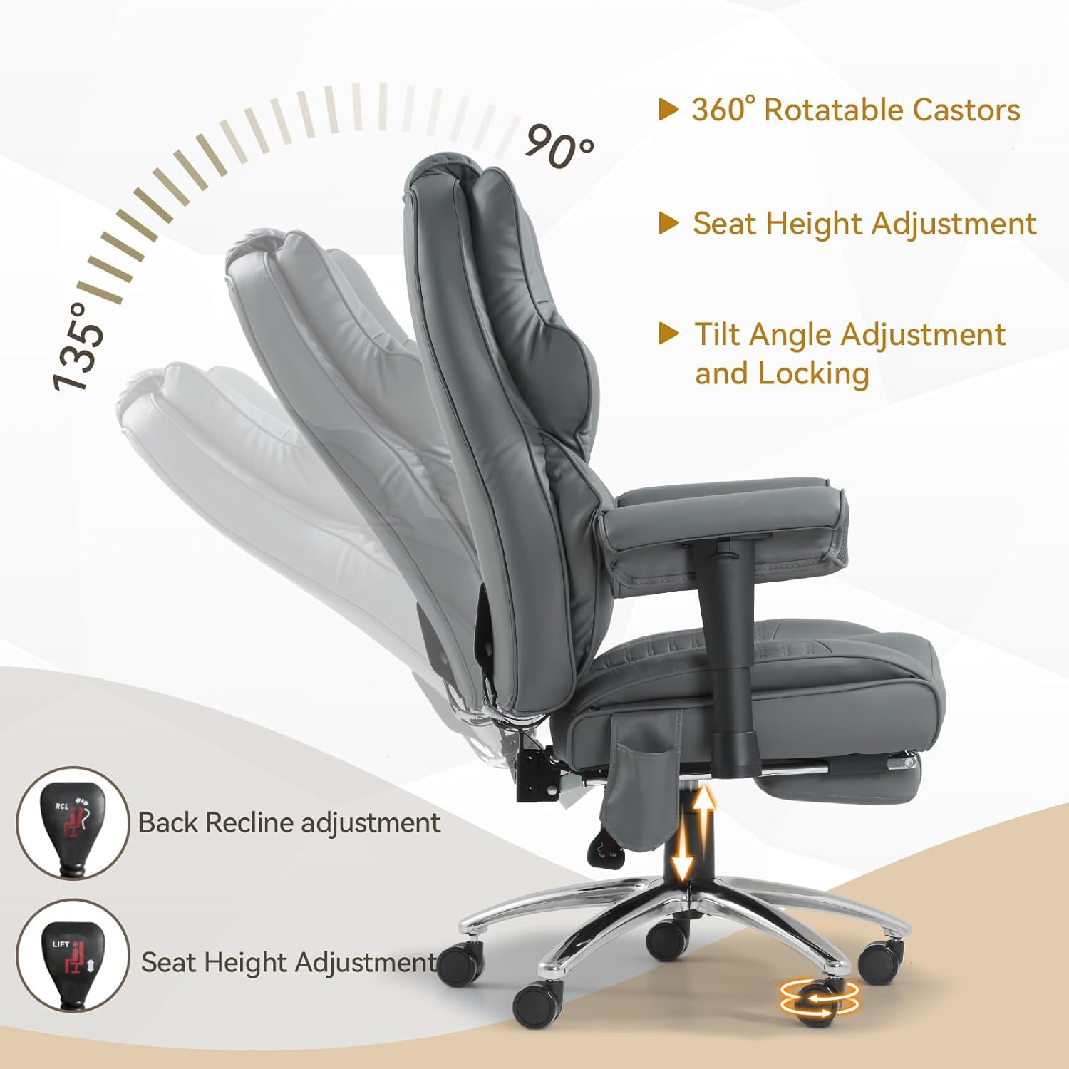 400lbs Executive Office Chair with Foot Rest for Heavy People, Ergonomic Big and Tall Desk Chair with Adjustable Headrest, High Back PU Leather Comfy Heavy Duty Computer Chair