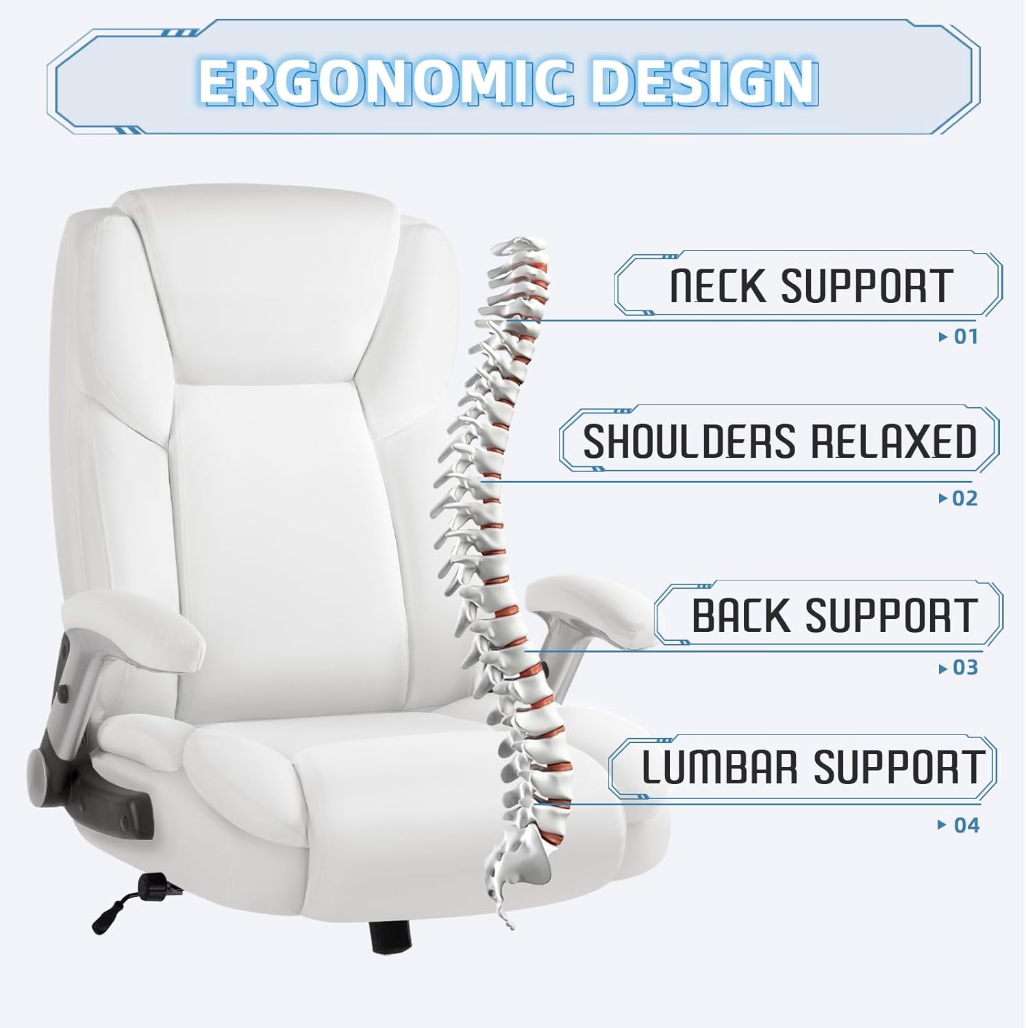 The TAVATA Big and Tall office chair stands out with its 500 lb weight capacity and generous 23.2-inch wide seat, making it one of the more accommodating options for larger users who need a heavy-duty chair without sacrificing style. The white PU leather upholstery and high back design give it an executive presence, while the adjustable lumbar support and 3D flip arms add functional ergonomics that bigger users often struggle to find in their size range.