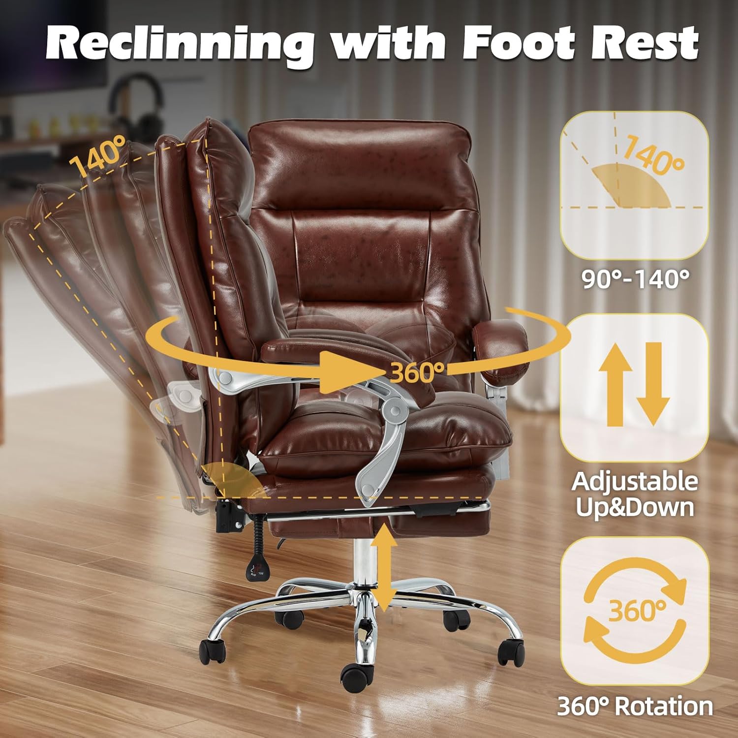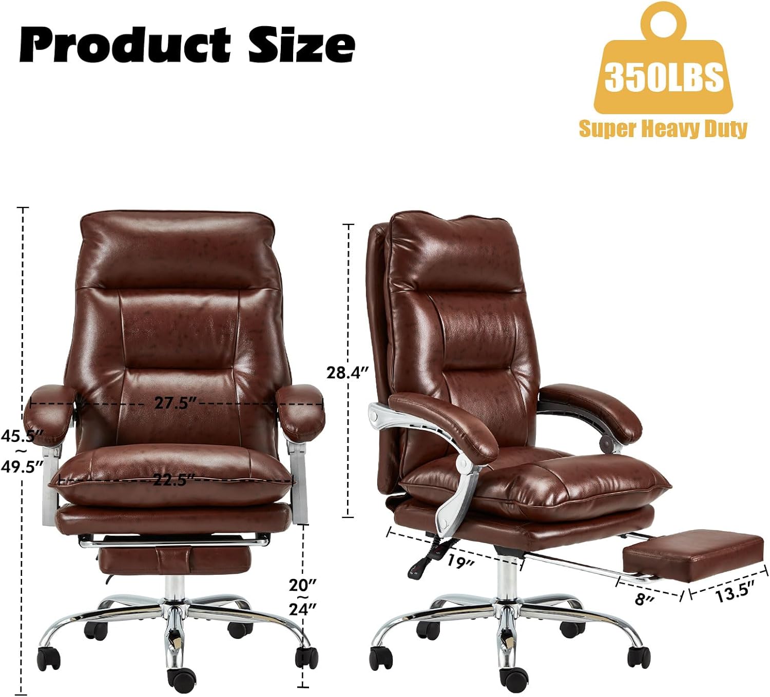 Ergonomic Office Chair with Footrest, Reclining Desk Chair with Leg Rest, Big and Tall 400 lbs Capacity, Executive PU Leather Foot Rest, Coil Spring Thick Cushion | Black